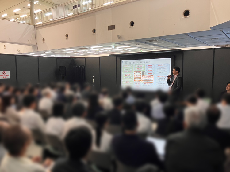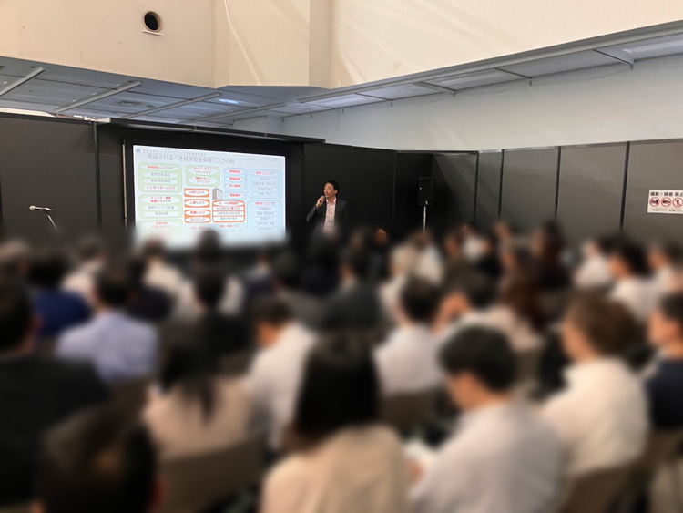 本年は、「技術流出対策と人権×内部不正とは」というテーマでプレゼンテーションさせていただきましたが、昨年に引き続き、本年も満員御礼のお申込みをいただきました。