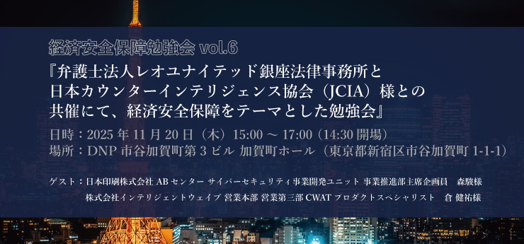 このたび、弁護士法人レオユナイテッド銀座法律事務所は、これまで5回にわたり、経済安全保障の理解を目的として勉強会を開催してきました。