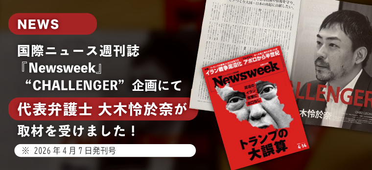 このたび、弁護士法人N&O Partners/名取・大木法律事務所 代表弁護士 大木怜於奈が、2026年4月7日発刊国際ニュース週刊誌『Newsweek』の“CHALLENGER”企画にて取材を受け、同誌に掲載されました。