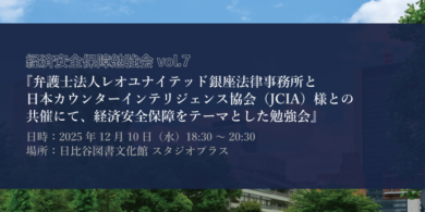 このたび、弁護士法人レオユナイテッド銀座法律事務所と日本カウンターインテリジェンス協会(JCIA)との共催にて、経済安全…